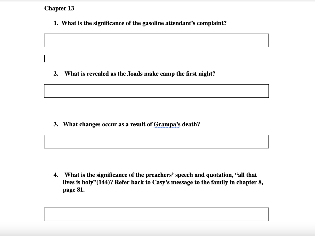 The Grapes Of Wrath Unit Chapter Reading Questions American Literature Online