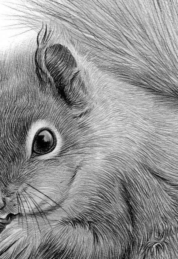 Squirrel Original B W Pencil Drawing Portrait Size 11 75 X 8 25 Mount Matte Size 14 X 11 Signed Animal Wildlife Art Etsy Uk