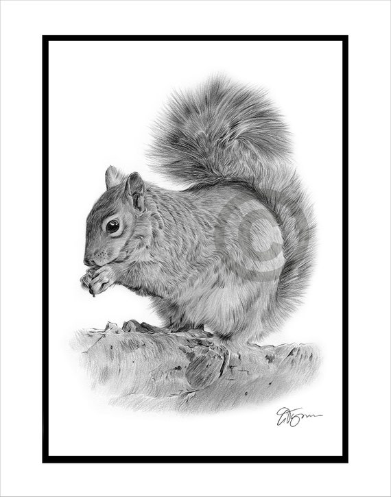 Grey Squirrel Original B W Pencil Drawing Portrait Size 10 X 8 Mount Matte Size 12 X 10 Signed Animal Wildlife Art Etsy Uk